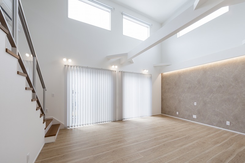 大きな吹抜けと間接照明が彩る開放感あふれる家