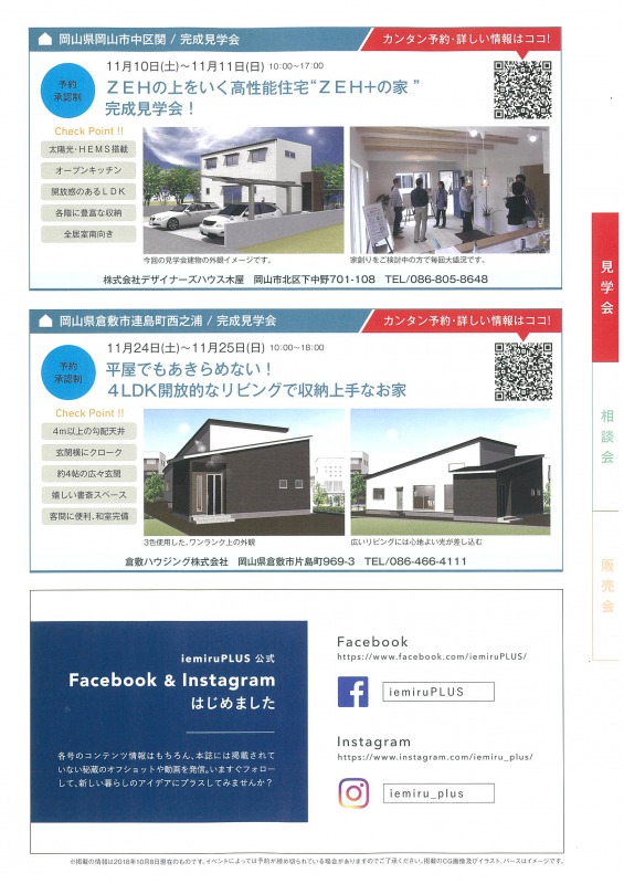 【iemiru PLUS】 11月号発行のお知らせ お知らせ 【iemiru PLUS】 11月号が発行されました。 関連記事 10/18(土)・19(日)岡山市東区富士見町モデルハウス完成見学会【販売中】随時見学可能 プライバシーや防犯に配慮し洗練された新保モデルハウス終了しました:随時見学可能 3LDK+書斎+WIC 欲しいものがそろった真壁モデルハウスⅢ終了しました:子育て世代のお施主様が選んだ「暮らしやすい住まい」完成見学会終了しました:暮しやすさを考えた高島新屋敷モデルハウスⅡ終了しました:子育て世代に人気!木屋の「太陽光搭載ZEH住宅」 完成見学会終了しました:プライバシーや防犯に配慮し洗練された新保モデルハウス終了しました:子育て世代に人気!!木屋の「太陽光搭載ZEH住宅」 完成見学会終了しました:三世代が同居するバリアフリーな家完成見学会終了しました:光熱費大幅削減!木屋の「太陽光搭載ZEH住宅」 完成見学会終了しました:子育て世代に人気「太陽光搭載ZEH住宅」 完成見学会終了しました:子育て世代に人気!!「太陽光搭載ZEH住宅」 完成見学会 投稿ナビゲーション 【iemiru PLUS】 10月号発行のお知らせ7社合同プロジェクト ストークビレッジ邑久駅WEST