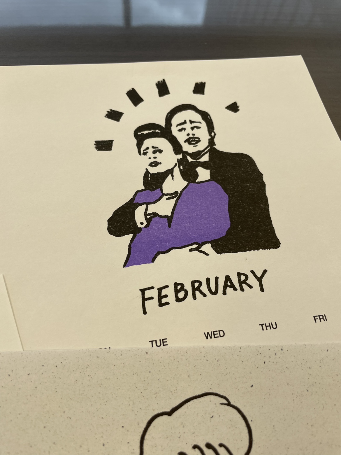 すっかり中身を忘れた状態でいざ2月のカレンダーをめくります。表紙からなんとなく個性的なのが伝わるとおもいますが…
