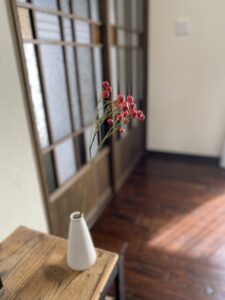 リビングの入口に飾りましたが、この赤い色が秋を感じさせてくれます。