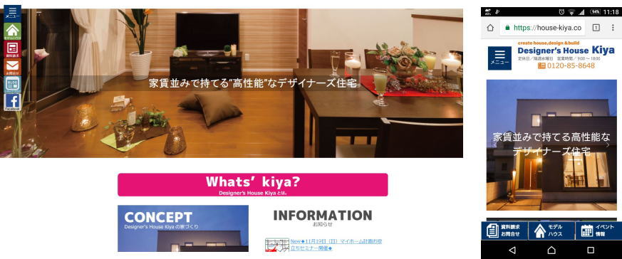 パソコン・モバイル端末どちらからも https://house-kiya.co.jp でホームページをご覧いただけます。