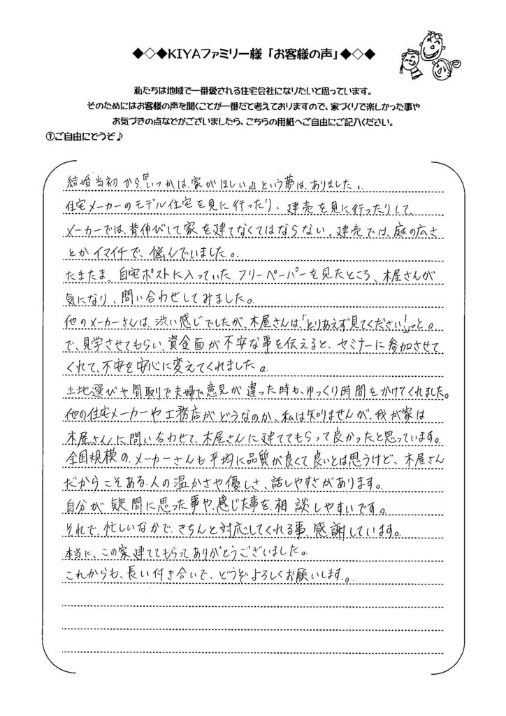 木屋さんに問い合わせて、木屋さんに建ててもらって良かったと思っています。