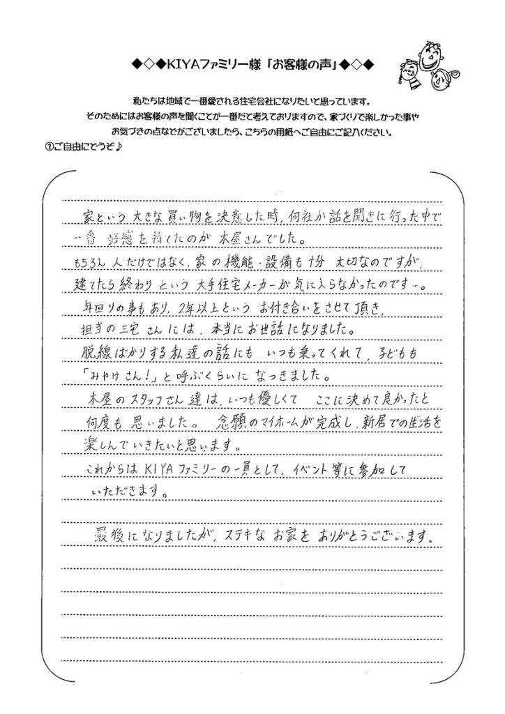 家という大きな買い物を決意した時、何社か話を聞きに行った中で一番好感が持てたのが木屋さんでした。