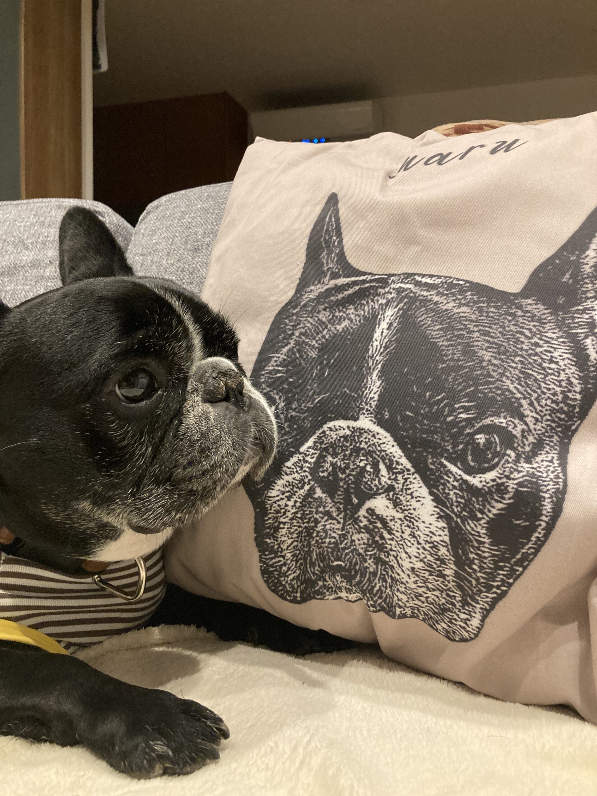先日まるちゃんクッションをもらいました🤣並んで撮影📷