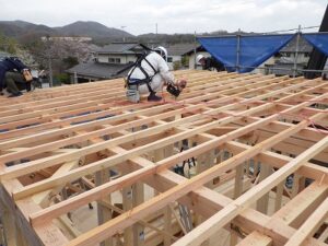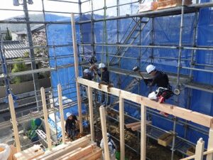 今回も大工さん達の見事なチームワークで無事に棟が上がりました!!