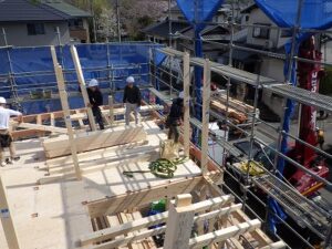 うれしい事といえばもう一つ、今週も棟上げ工事がありました!