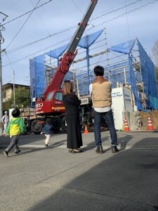 ご近所にお住いのオーナー様も見学に来てくださったり(お子様がクレーン車に大喜び)