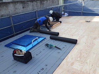 夕方には屋根にルーフィングシートを施工して終了です!!