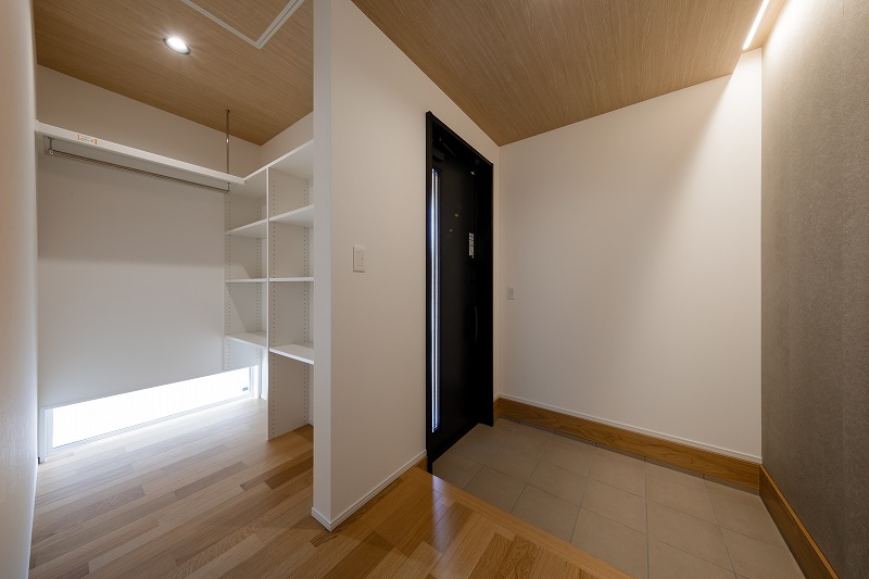 ●玄関・玄関ホールは間接照明とスタイリッシュな内装材でオシャレに