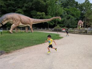 元気いっぱい 恐竜公園で楽しく遊び