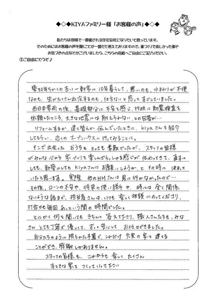 とにかく何を聞いてもきちんと答えて下さり、職人さんたちも、みなさんとても丁寧で優しくて、ずっと安心してお任せできました。