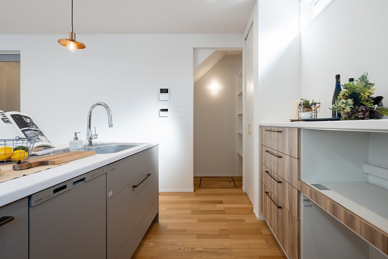 ●キッチンにはパントリー収納、2階に3帖のWICと収納も充実