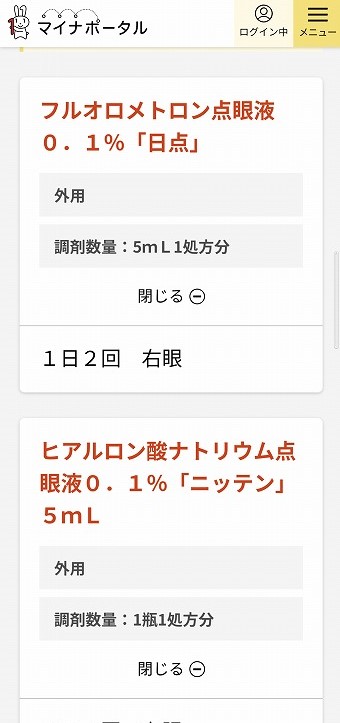 本人も忘れていた眼科の目薬まで記載されておりました。