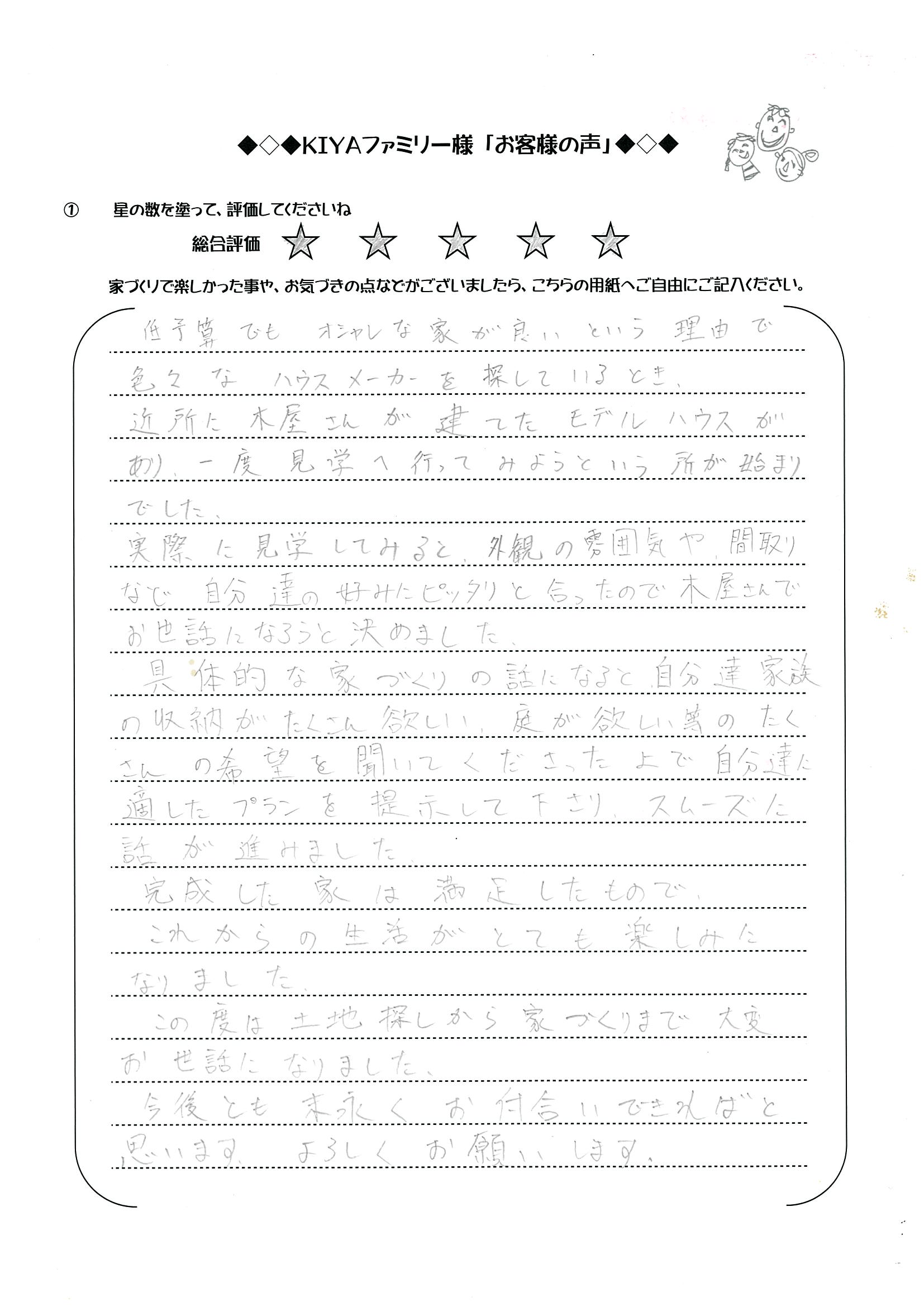 実際に住んでみてお家を建てて本当に良かったなと日々思っています。 この度は素敵なマイホームを作ってくださり本当にありがとうございました!! お家を建てるにあたって様々な不安があったのですが、親身になって相談に乗って下さっ […]