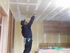 天井にボードを施工しています!