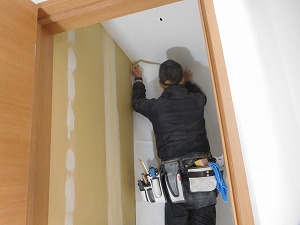 断熱材を外部に接する壁に隙間なく入れていきます。
