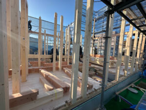 この日は、家のかたちが一気に立ち上がる一日。柱が立ち、梁が組まれ、現場は一気ににぎやかに。図面だった住まいが、ぐっと現実味を帯びてきました。ここから完成に向けて、ひとつひとつ丁寧に。引き続き、安全第一で工事を進めてまいります。