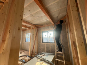 施工状況を確認しながら、密度にも注意してセルローズファイバーを充填。