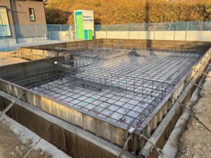 基礎部分の骨となる鉄筋を配筋した後に、コンクリートの打設を行います!