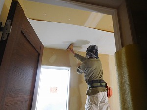 断熱材を外部に接する壁に隙間なく入れていきます。