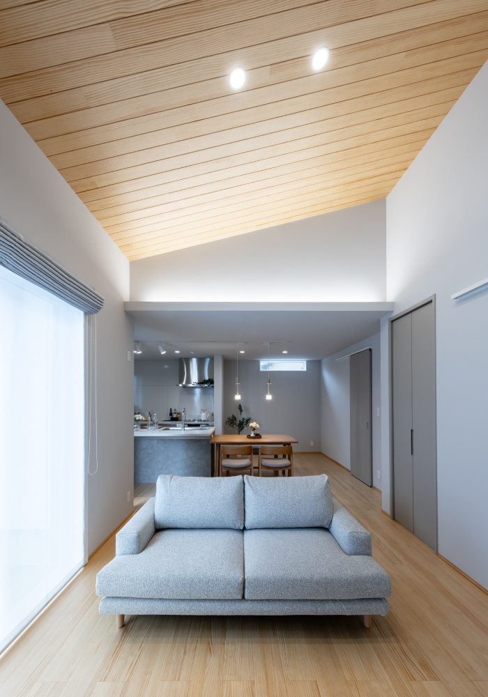 勾配天井が開放的な平屋