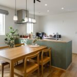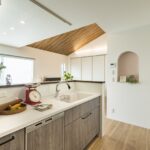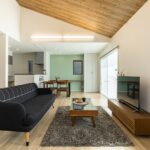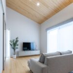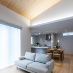 勾配天井が心地よい広々リビングを中心に、家事や生活動線にこだわった平屋の家。