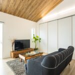 木目の下がり天井が映えるスタイリッシュなリビングに、