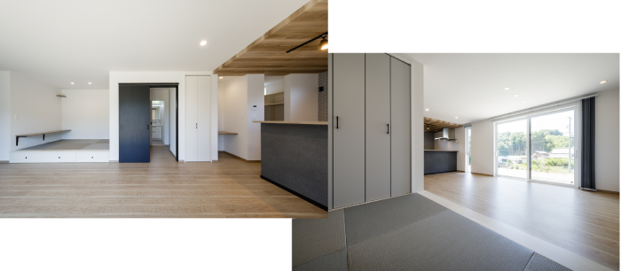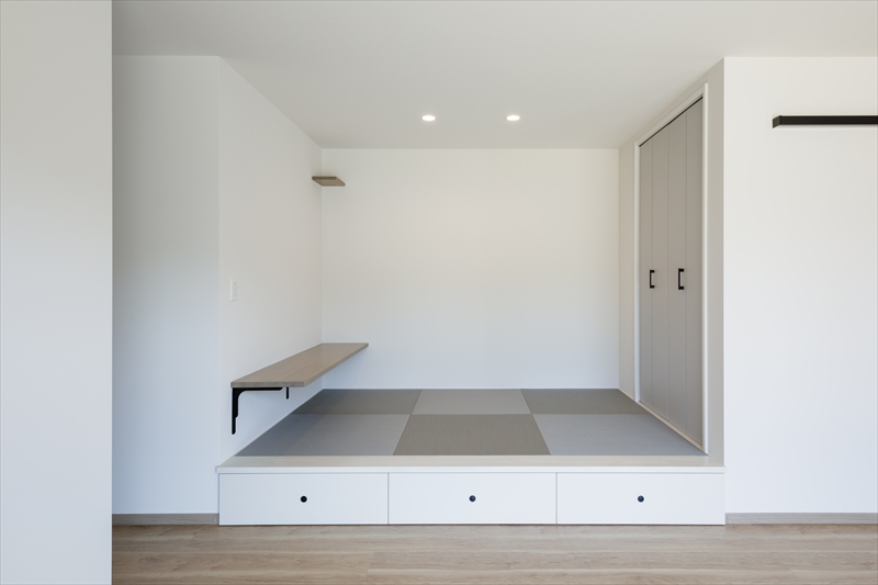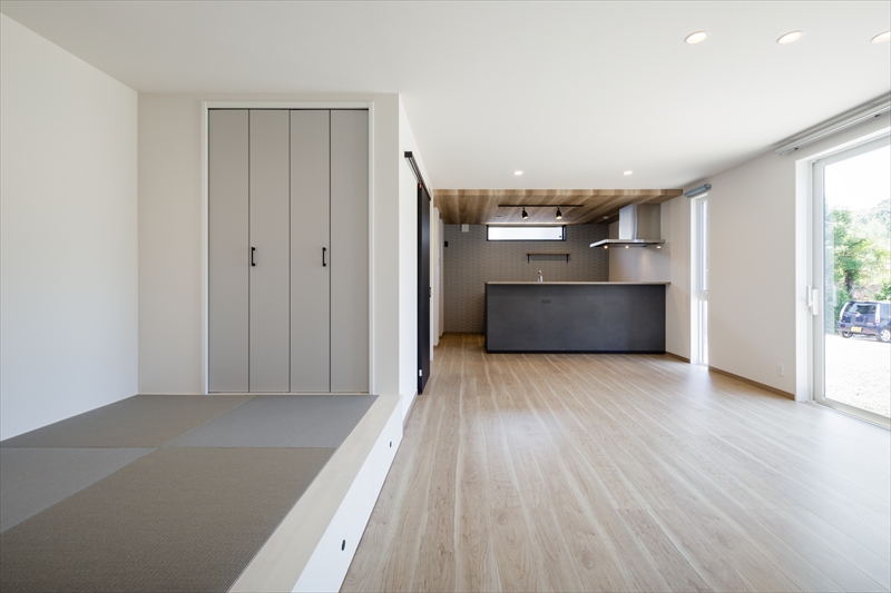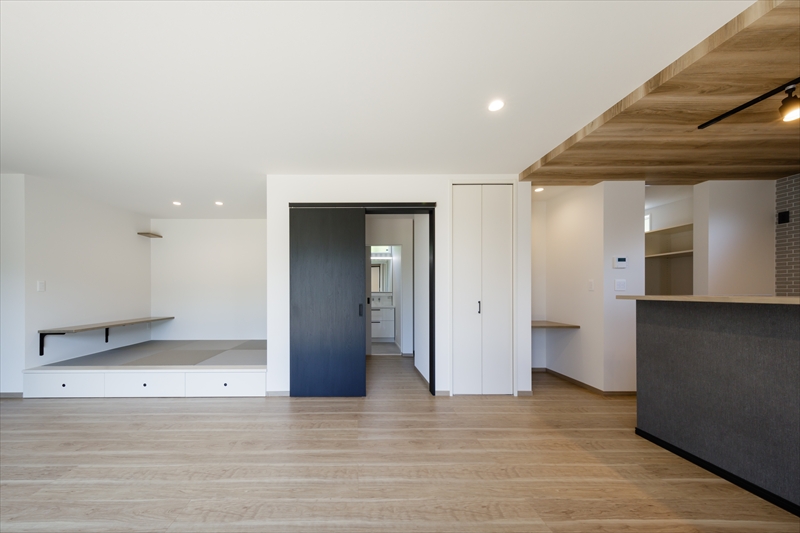 畳コーナーや充実の収納を備えた平屋の家。