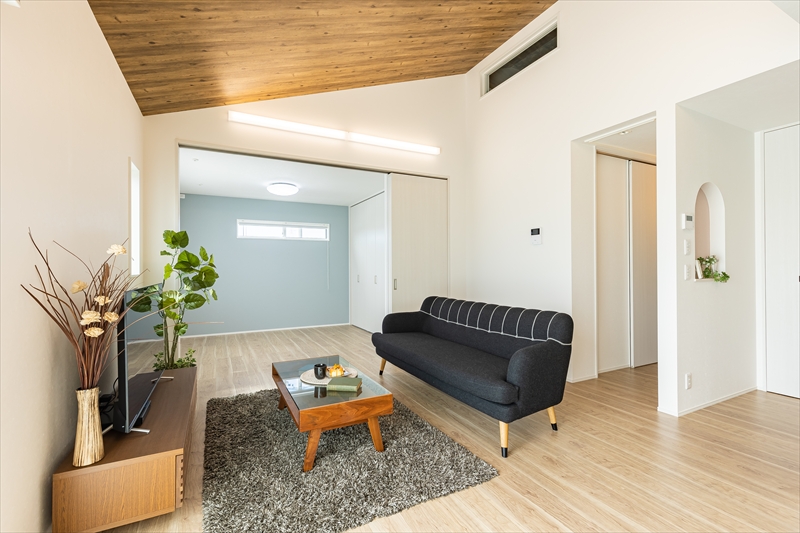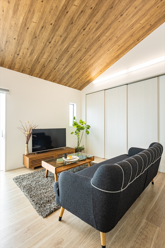 勾配天井が開放的な平屋